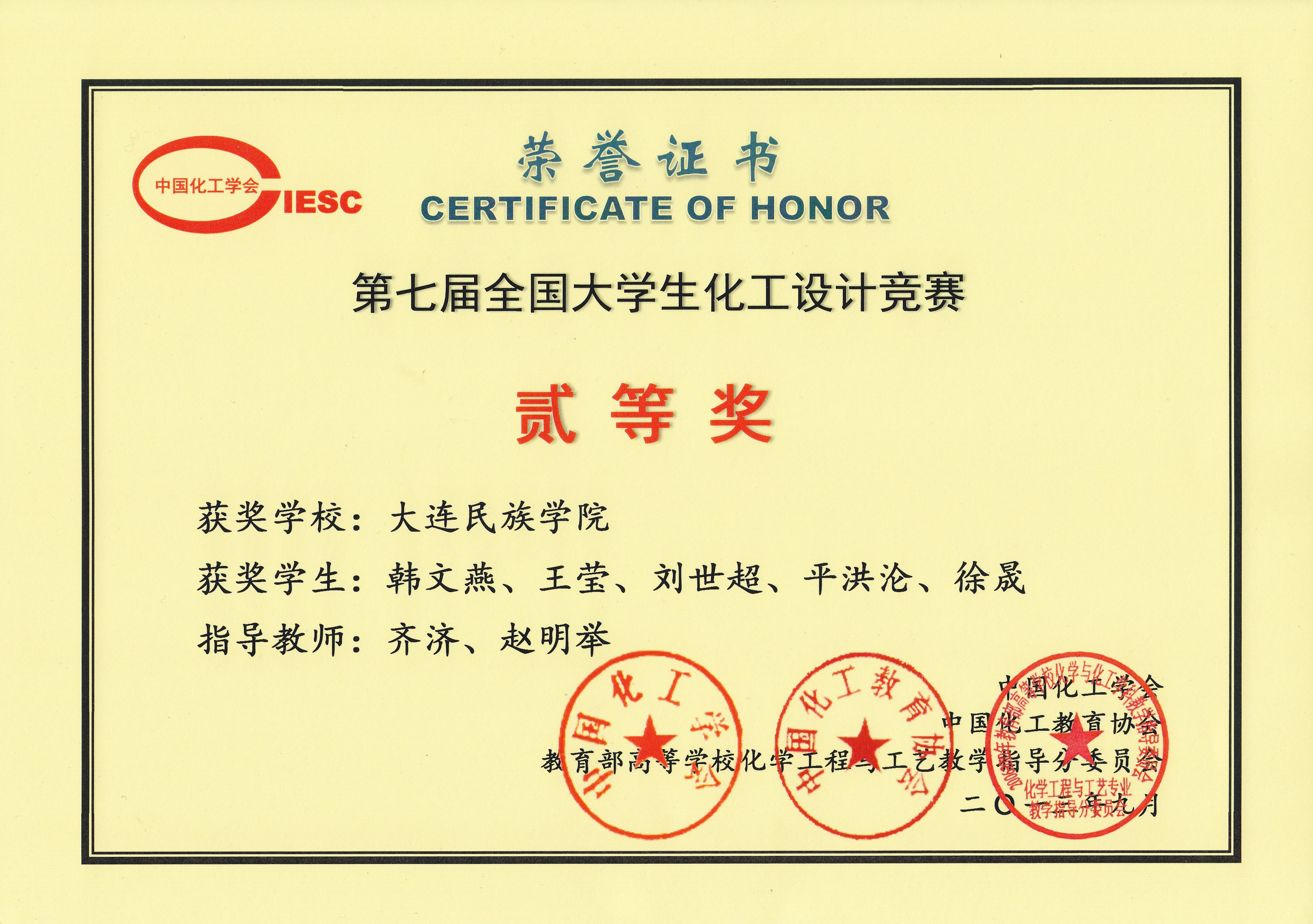 日前,2013第七届全国大学生化工设计竞赛落下帷幕,bat365化学工程与工艺专业学生韩文燕、王莹、刘世超、平洪沦、徐晟组成的队伍获得国家二等奖。这是bat365首次参加全国化工专业类比赛,经过东北赛区的初赛、全国总决赛最终获得全国二等奖的殊荣。