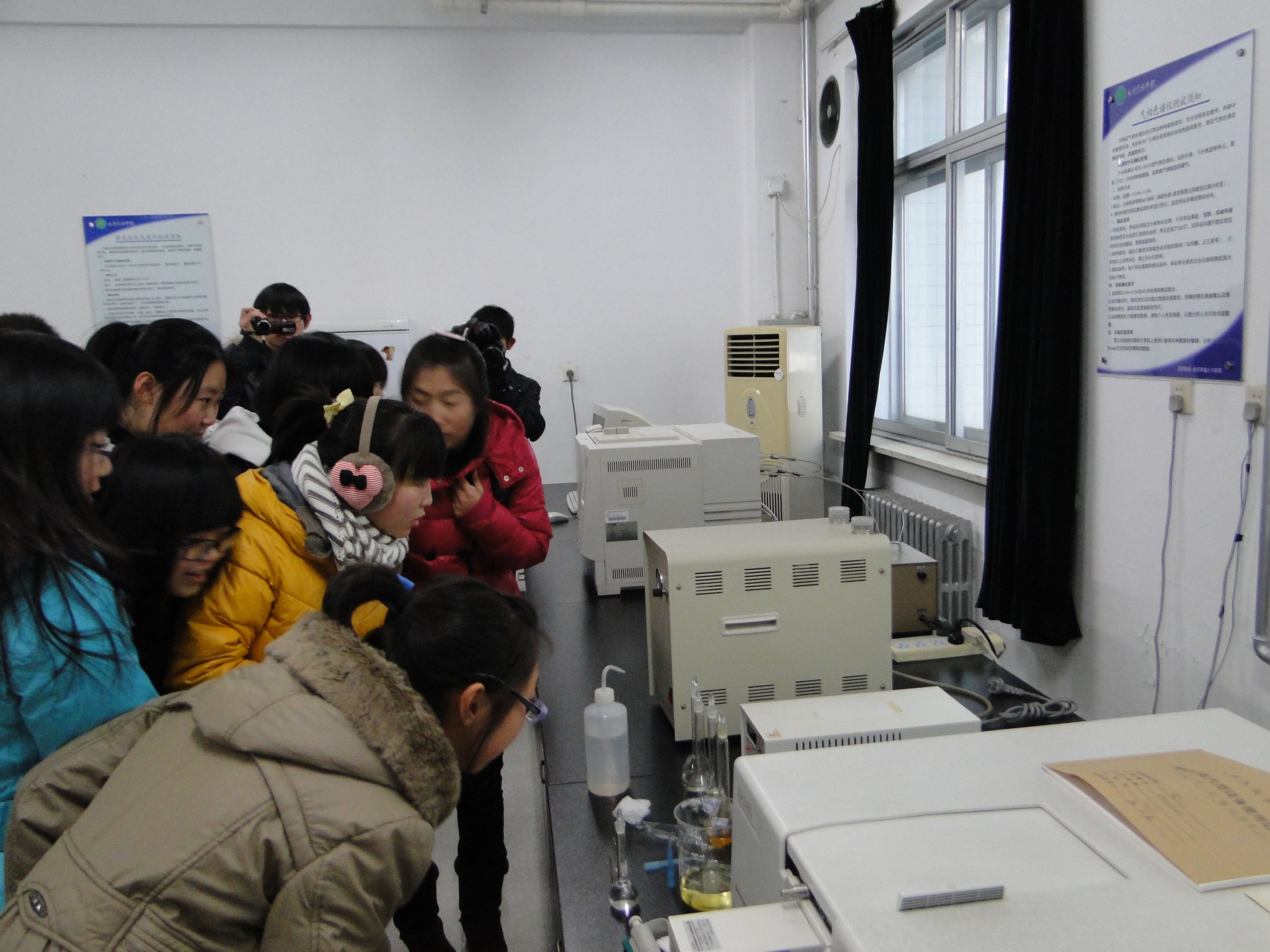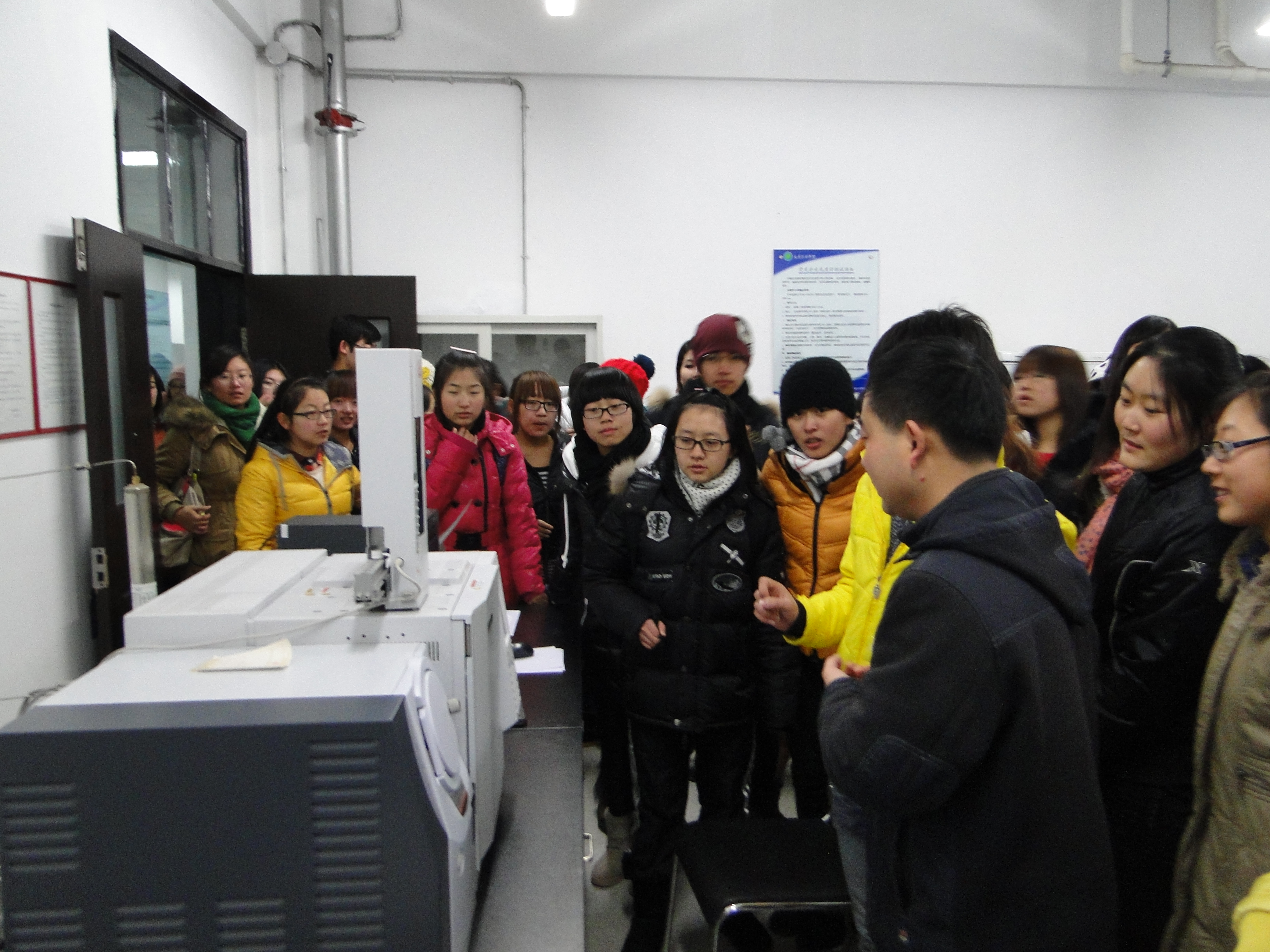 参观过程中,实验室的教师和研究生同学为同学们讲解了仪器设备的用途及基本操作,还现场演示了蒸馏、萃取等多个实验。先进的设备、精密的仪器令同学们大开眼界,激发了学习兴趣。班导师在参观结束后因势利导地给学生做了专业教育和学业指导,并对同学们感兴趣的问题做了详细的讲解。