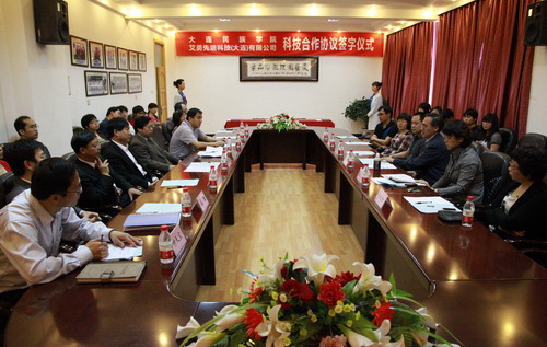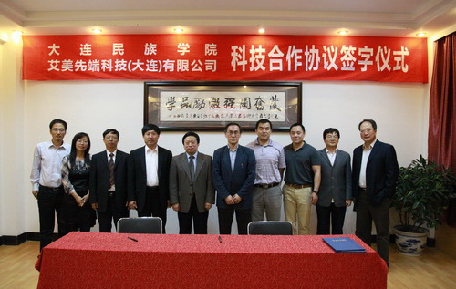 张世伟董事长和生命科学学院院长胡文忠分别做了讲话。表示要加强沟通,将合作项目做好、做实,以优异成绩回报社会。生命科学学院与艾美先端科技(大连)有限公司负责人共同签署了食品安全快速检测技术研发项目合作研究协议。