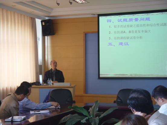 张教授从试题质量、试卷评阅和成绩登记等几个方面,采用了设问式的讲解方式,一边提出问题一边讲解,使全院教师受益匪浅。随后,程济民教授又对全院教师提出了要求,希望每位教师都能够认真对待自己的工作,认真做好教育教学工作的每一个环节。