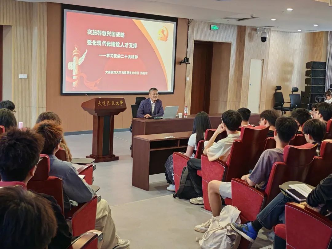 马克思主义学院陈宪章教授从科教兴国战略入手,对习近平新时代中国特色社会主义思想中关于科技、人才、教育方面的内容进行了讲解,强调只有加强科技创新和人才培养,才能提高国家的整体实力和竞争力。希望同学们能够努力学习专业知识、加强专业素养,培育创新意识、提高创新能力,做适应国家发展要求的新时代大学生。