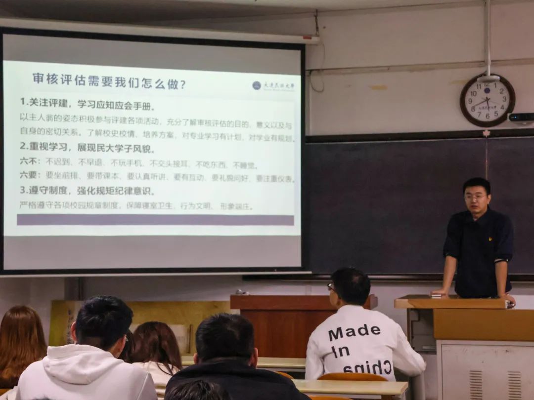 动员宣讲过程中,班导师们详细向学生介绍审核评估的目的、流程和标准,让同学们明白审核评估不仅是对学校教学质量的检验,也是对学生学习成果的认定。辅导员则针对不同年级学生的特点,讲解了审核评估对个人成长和职业发展的积极作用,激发了同学们的主人翁意识,并面向全体学生提出“迎评促建,积极作为”要求。