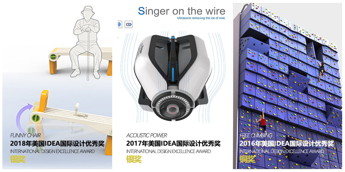 中国首个获得美国IDEA杰出工业设计奖金奖院校(2011),且唯一获得二次金奖的院校(2011、2016)