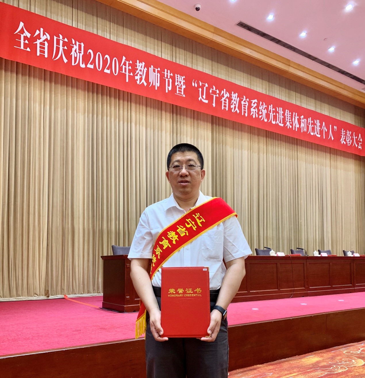 2020年9月9日上午9点,辽宁省庆祝2020年教师节“暨辽宁省教育系统先进集体何先进个人”表彰大会在沈阳市友谊宾馆二楼大厅举行。bat365中文官方网站设计学院获得2020年辽宁省教育系统先进集体,学院院长包海默教授代表学校参加本次表彰大会,并领取了“辽宁省教育系统先进集体”荣誉证书。