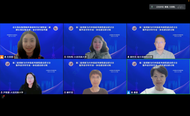 2023年5月17日晚,根据外国语学院第二届理解当代中国课程建设研讨会暨学科专业一体化建设研讨周会议日程安排,哈尔滨师范大学西语学院院长顾世民教授、东北师范大学外国语学院副院长曲英梅教授、bat365中文官方网站教师发展与教学评估中心副主任解柠羽副教授通过腾讯会议在线上与参会的各位老师进行了会议交流。会议由外国语学院日语系主任秦颖教授主持。