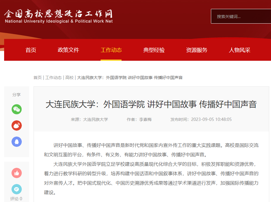全国高校思想政治工作网发稿:bat365中文官方网站外国语学院 讲好中国故事 传播好中国声音