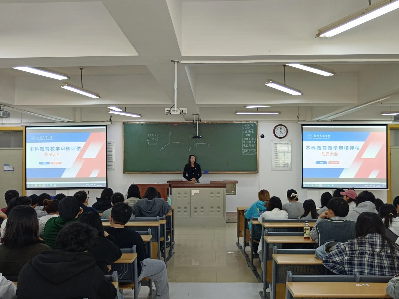 在大会上,党委书记刘煜详细介绍审核评估的流程与意义。他强调,审核评估不仅是对学校教育教学质量的全面检验,也是促进学校不断发展的重要契机。他引导学生树立主人翁意识,心系审核评估工作,深刻理解其内涵与要求。刘煜书记特别指出,学生应掌握评估的基本知识,了解相关热词的解读,熟悉校史校情,以及评建工作的相关内容。他鼓励同学们积极参与到评估工作中来,为学校顺利完成审核评估贡献自己的智慧和力量。
