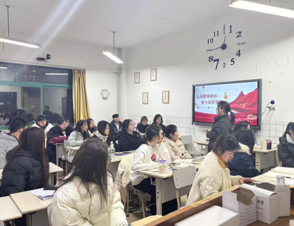 外国语学院组织召开“弘扬雷锋精神 奋斗成就梦想”主题班会,组织学生收听收看“2025年全省教育系统学雷锋活动启动仪式暨辽宁省大中小学春季‘开学第一课’”,大力弘扬雷锋精神,增强雷锋精神的感召力、吸引力,深刻体悟“螺丝钉精神”的时代内涵,将雷锋精神与中华民族伟大复兴奋进征程紧密联结,引导青年学子筑牢“请党放心,强国有我”的信念根基。