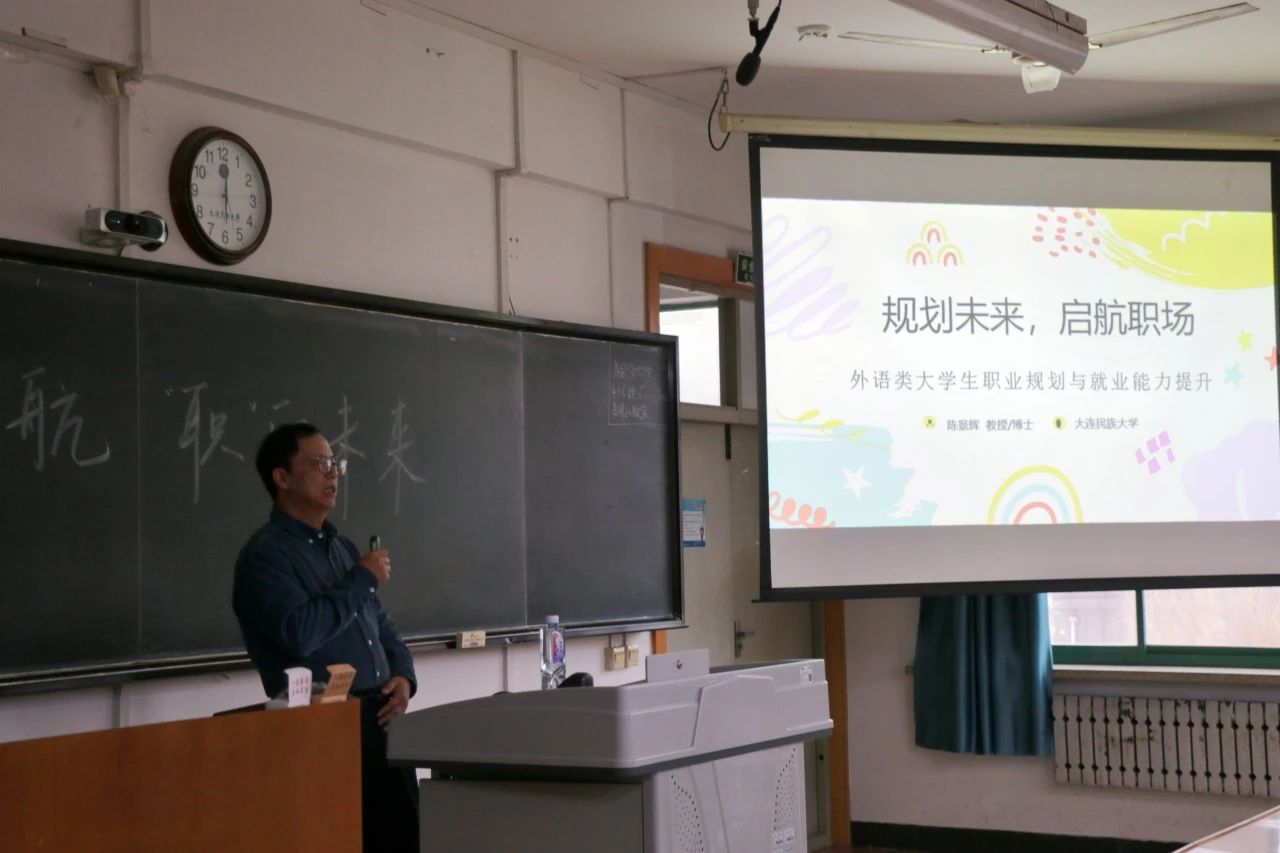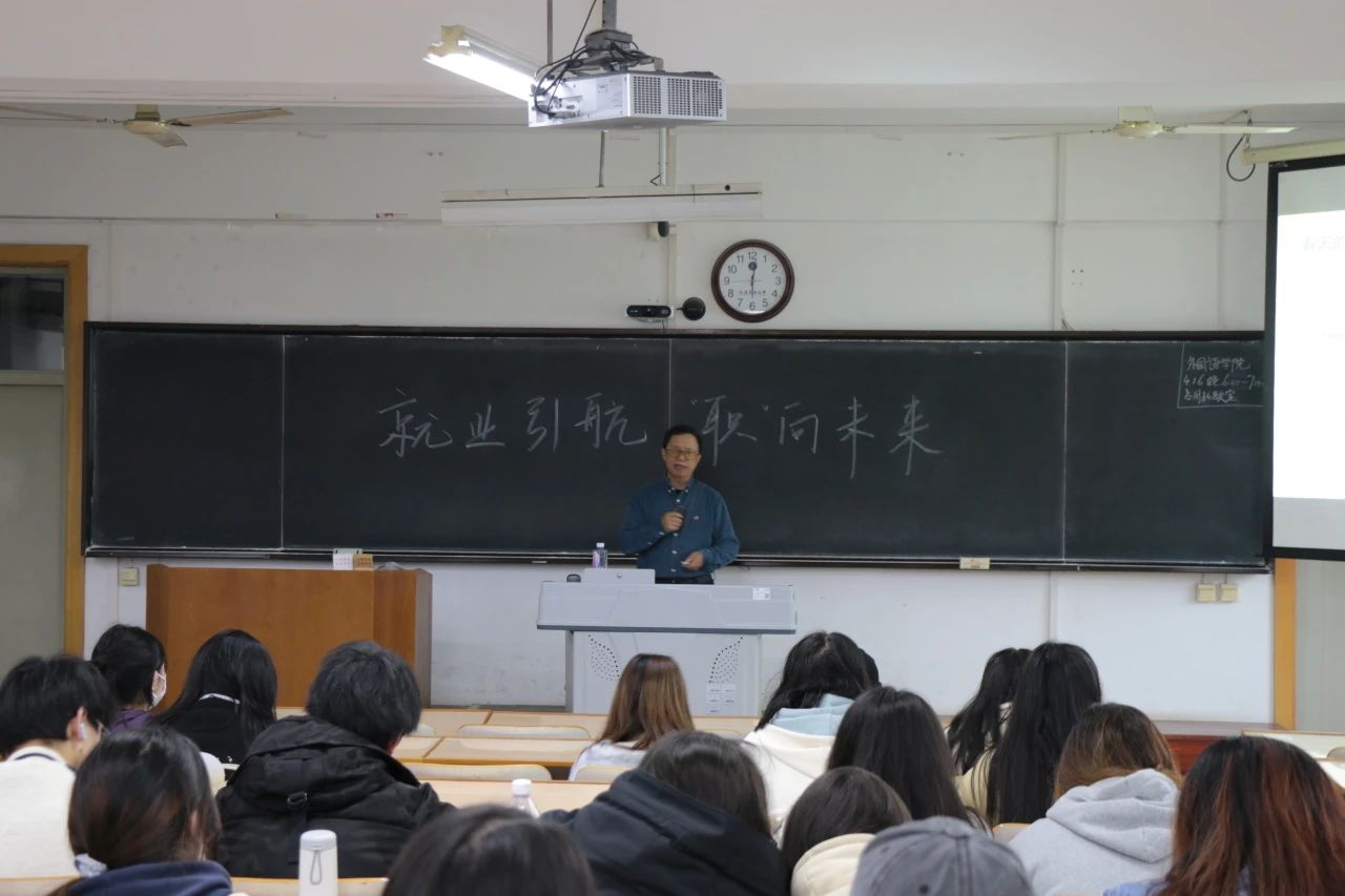 为深入贯彻教育部关于高校毕业生就业工作的决策部署,落实学校第二次党代会精神推进会暨2025年工作部署会精神,全力落实学校党委“两个千方百计,一个全力以赴”就业工作要求,积极探索并大力推动校企联动、资源互通的协同育人模式,近日,外国语学院举办就业服务周系列活动,邀请校级督导陈景辉教授围绕“规划未来,启航职场”在融汇楼301开展讲座,全体2024级学生参加讲座,讲座由辅导员黄介微老师主持。