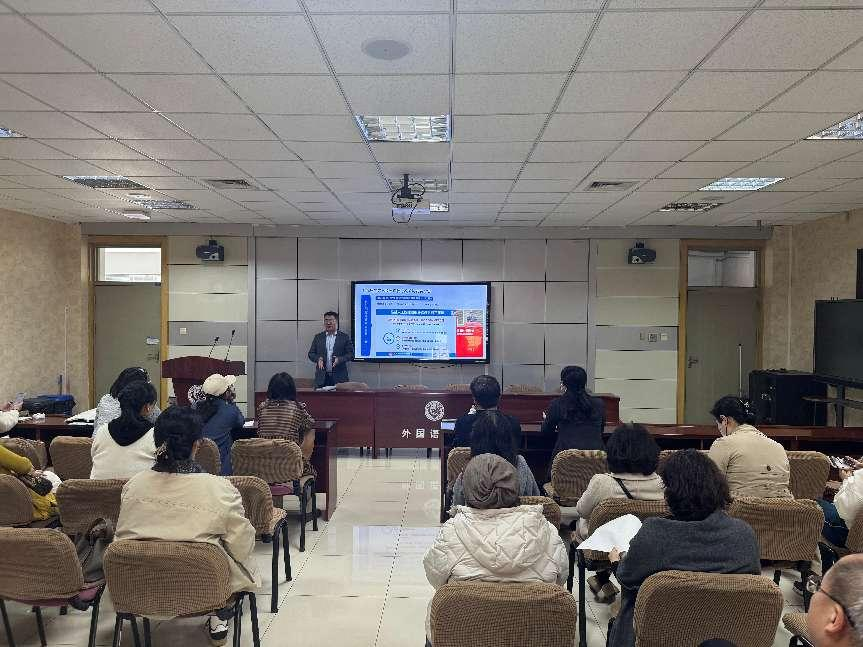 4月22日13:30 至 15:00,由教师发展与教学评估中心主办,外国语学院承办的题为“人工智能背景下外语教学变革和发展”的教师培训在bat365融汇楼325召开,会议邀请了辽宁一课科技有限公司全国营销经理金钊做专题培训。