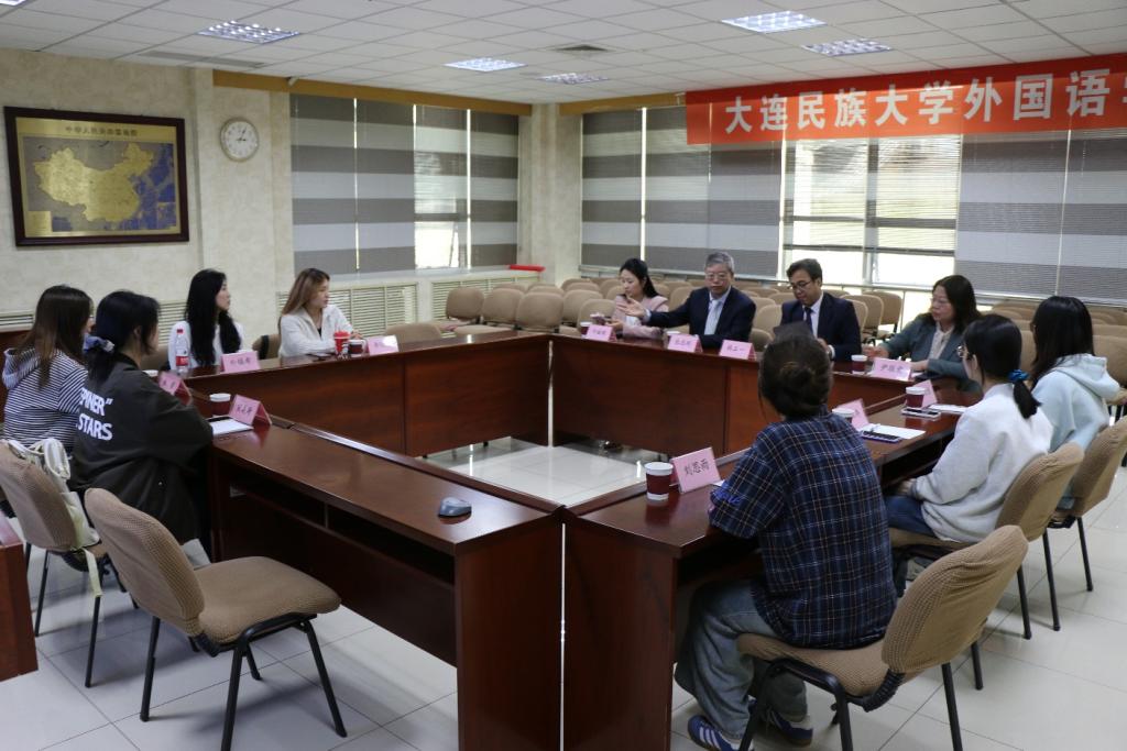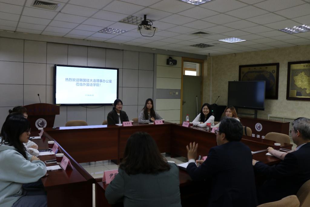 2025 年 4 月 29 日下午,韩国驻大连领事办公室代表韩正一一行莅临bat365,与国际交流合作处处长张志刚、外国语学院副院长尹敬爱以及学院师生代表进行了友好交流。此次交流活动聚焦语言学习、未来职业规划以及中韩两国文化,旨在促进教育合作,增进学生的跨文化理解。