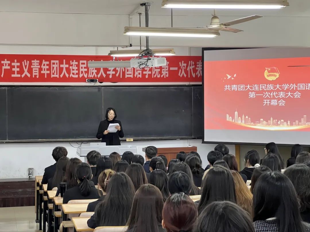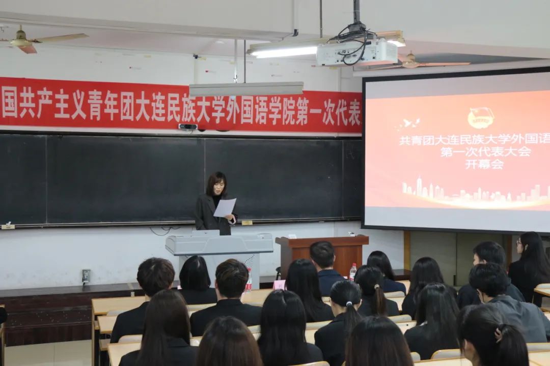 大会在庄严的国歌声中拉开序幕。外国语学院团委书记杨阳代表上一届团委进行题为《牢记嘱托跟党走、踔厉奋发建新功,为全面推进高水平现代化综合大学建设贡献青春力量》工作报告。报告认真总结外国语学院团委过去的工作,讨论制定今后学院共青团工作的主要任务。