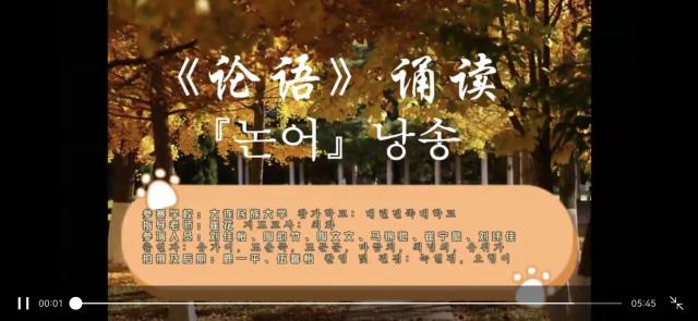 3月25日,由尼山世界儒学中心、中国孔子基金会、山东省教育厅、山东省人民对外友好协会联合主办的“第二届儒家经典跨语言诵读大会”评审结果揭晓,我院朝鲜语202班刘佳怡、陶韵竹、陶文文、刘玮佳、崔宁懿、马锦驰的中韩双语诵读作品“儒之道,在于学 —— 《论语》诵读”在4200余件作品中脱颖而出,荣获“优秀儒家经典传诵人”奖,指导教师崔花获优秀指导老师奖。