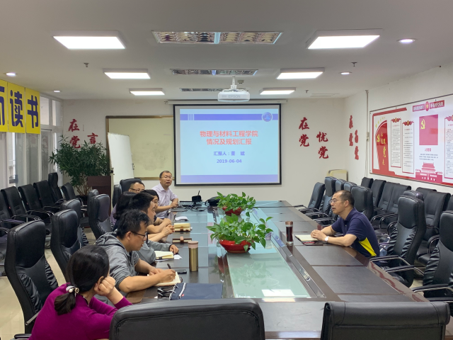 2019年6月5日上午,校长丁克毅到物理与材料工程学院调研指导工作。学院全体领导班子、各党支部书记、系主任和部门负责人在学院会议室参加了交流汇报。