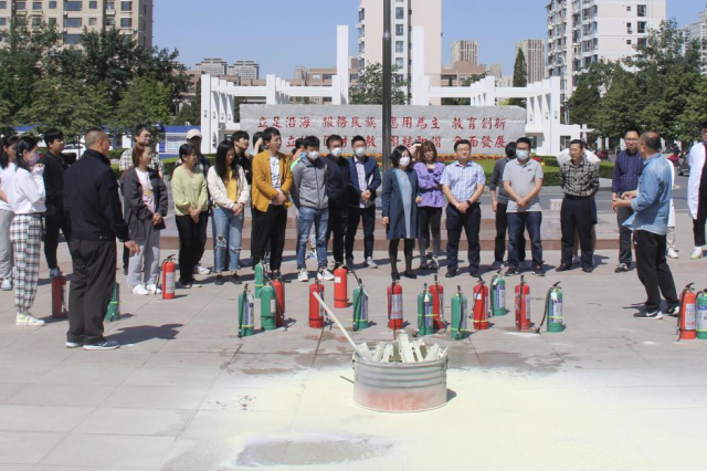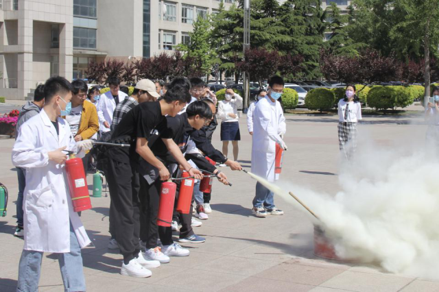 第三阶段,由现场保卫处老师对灭火器的使用进行了实操演示,并对不同种类灭火器的使用方法及用途进行了详细介绍,在老师的指导下,同学们准确掌握了灭火的要点,并迅速对模拟着火点进行了扑灭,圆满完成本次应急疏散演练。参加演练的学生纷纷表示,“这次消防演练很有意义,第一次使用灭火器,真实场景灭火演练不仅能够提升消防技能,而且具有较强的实用价值。