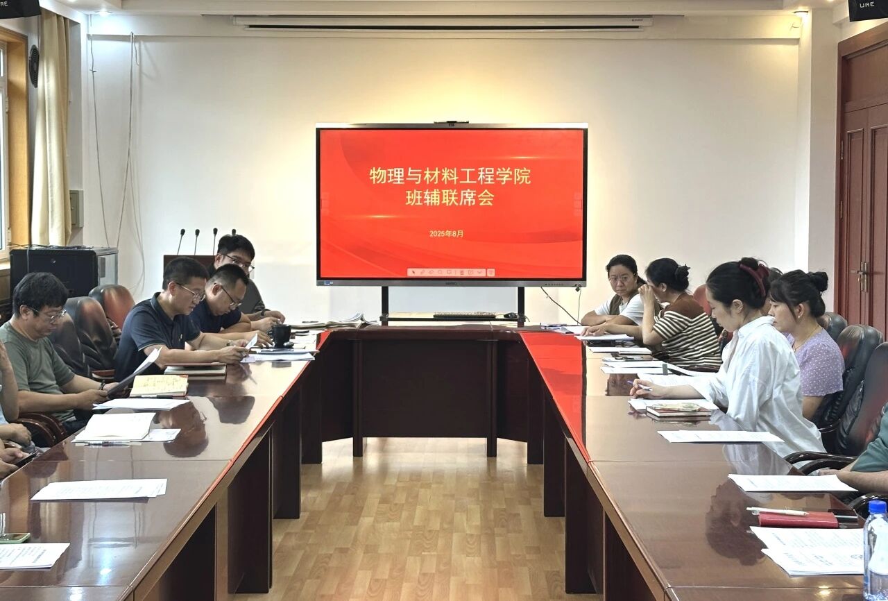 8月28日,物理与材料工程学院学生工作办公室召开2025年秋季学期班辅联席会,传达学习学校党委二届四次全会精神、传达学习学校党委书记赵铸在持续全面落实学校第二次党代会精神处级领导干部工作研讨班上的讲话精神、传达学习学校2025年秋季学期学生工作者会议精神并部署了本学期学生重点工作。会议由学院党委副书记、学生工作办公室主任曹红光主持,学院全体班导师、辅导员参加会议。