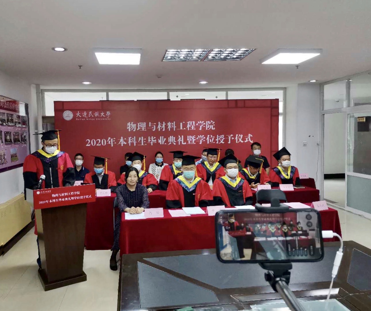 桃李芬芳,蝉鸣仲夏,志存远方,不负韶华。6月24日,物理与材料工程学院顺利举行2020年本科生毕业典礼暨学位授予仪式,学院院长董斌、学院党总支书记高娃、副院长张振翼、副院长冯志庆,学术委员会成员、毕业年级班导师、学生工作者以及全体毕业生、毕业生家长参加典礼。由于特殊时期,毕业典礼采用线上线下同步形式,学院全体师生通过企业微信直播实现全程视频观看。本次毕业典礼由学院党总支书记高娃主持。