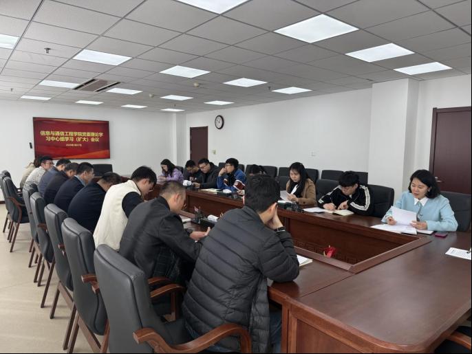 为深入贯彻落实党中央在全党开展树立和践行正确政绩观学习教育的工作要求,全面落实学校党委二届五次全会精神,信息与通信工程学院党委于3月27日召开理论学习中心组学习(扩大)会议。学院领导班子成员、党委委员、科级领导干部及各党支部书记参加会议。学院党委书记苑杰主持会议。