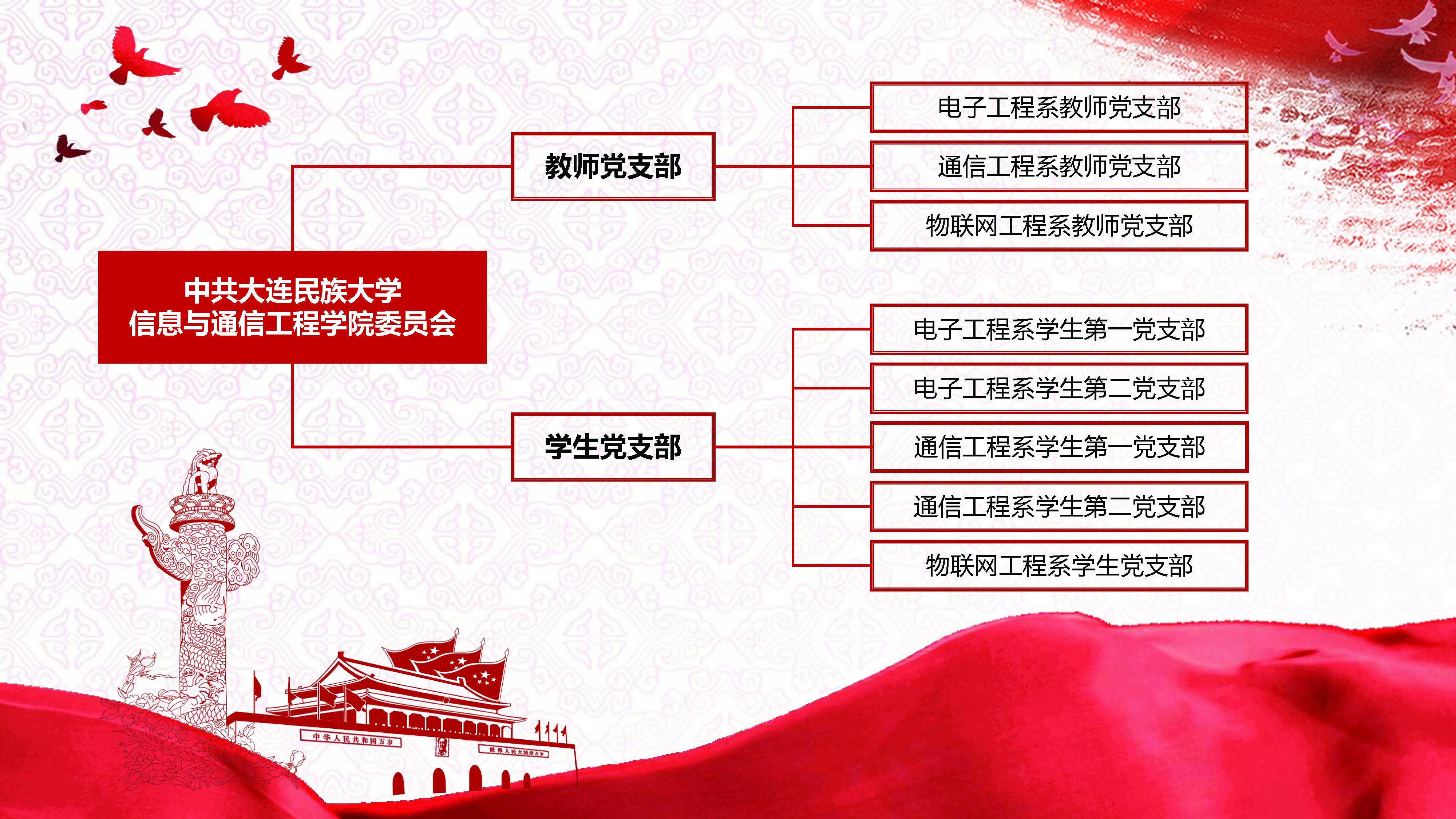 中共bat365中文官方网站信息与通信工程学院委员会现有党员296人,其中教师(教工)党员45人,研究生党员108人,本科生党员143人。党委会成员9人,其中书记1人,副书记2人,委员6人。下设8个党支部,分别为电子工程系教师党支部、通信工程系教师党支部、物联网工程系教师党支部、电子工程系学生第一党支部、电子工程系学生第二党支部、通信工程系学生第一党支部、通信工程系学生第二党支部、物联网工程系学生党支部。