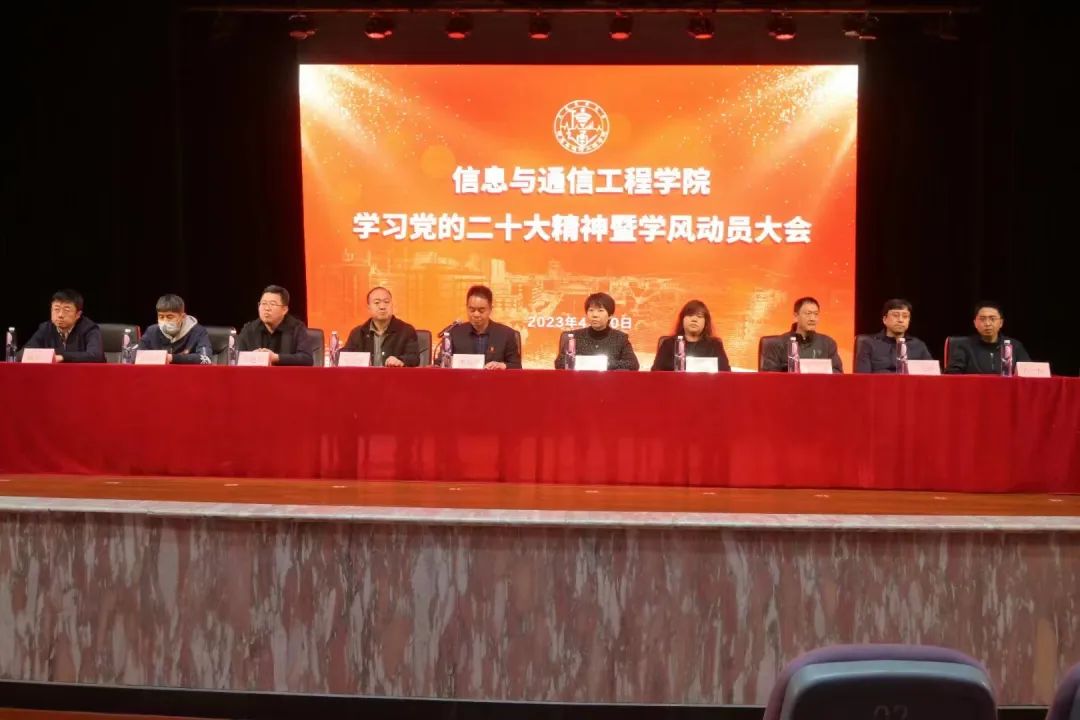 为深入学习贯彻党的二十大精神,全面落实学校党委“抓落实、抓基层、抓学风”的工作总要求,持续推进“大学风”和“有高度的学风”建设,信息与通信工程学院举行学习党的二十大精神暨学风建设动员大会。学院领导班子、各专业主任、班导师、辅导员、获奖学生代表以及全体2021级、2022级学生参加大会。学院党委书记李英震主持会议。