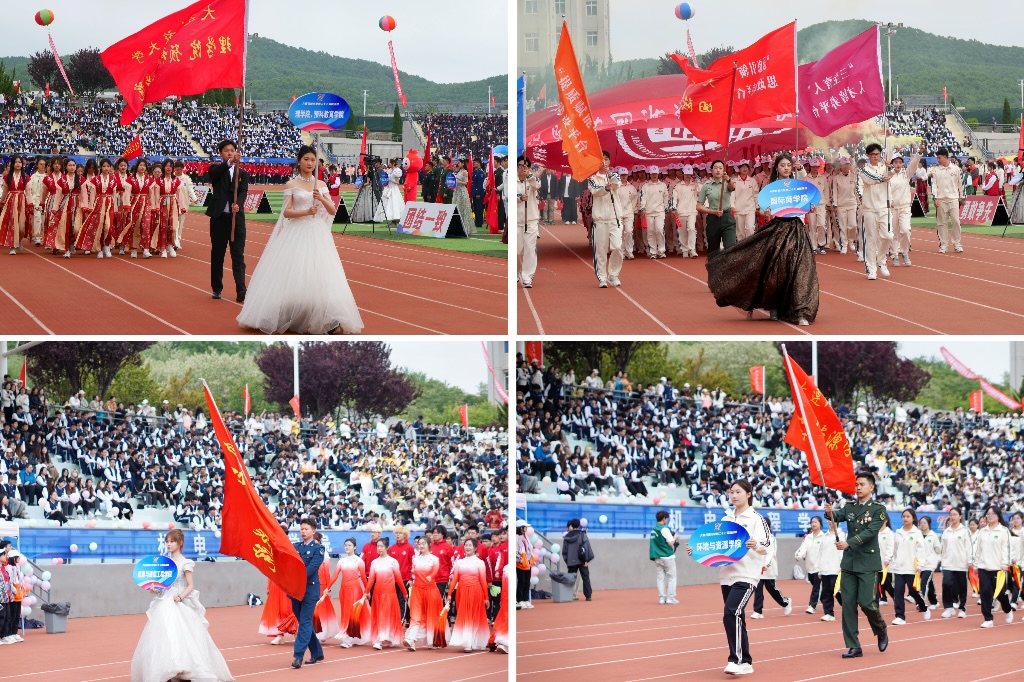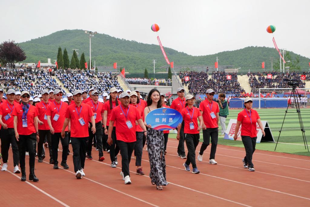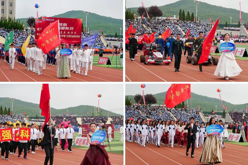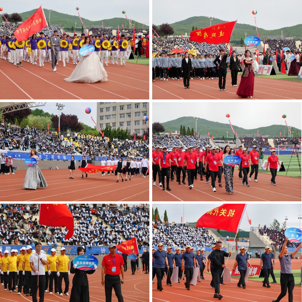 伴着《运动员进行曲》,国旗方队、彩旗方队、裁判员方队与各单位33个师生代表队、1835名运动员迈着整齐划一的步伐依次入场接受检阅,精神抖擞。