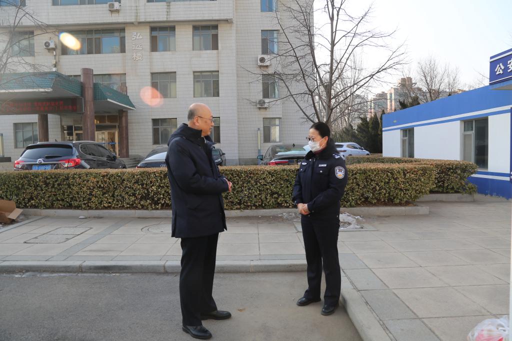 赵铸先后来到正门门岗、派出所驻校警务室、建业楼、变电所、博知苑4号、学生处、食堂、体育馆、厚德楼等一线岗位,亲切慰问寒假期间坚守岗位认真履职的教职员工,希望大家继续发扬无私奉献精神和优良作风,加大巡查力度,提升消防安全意识,消除各类安全隐患,维护校园平稳有序。